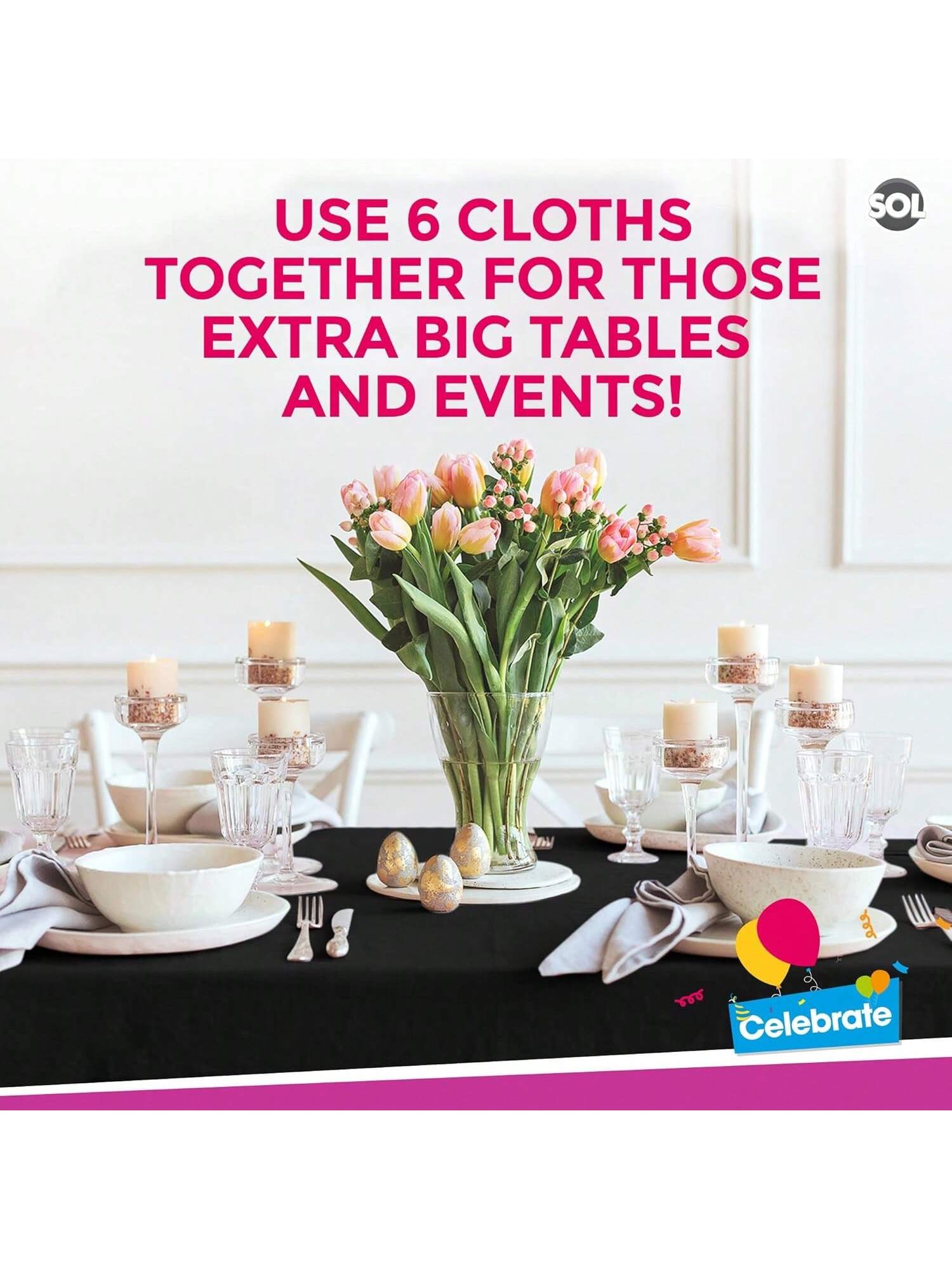 Multi-Purpose - Our 6pk black table cloth rectangular can be used for various occasions and different venues like; restaurants, parties, weddings, outdoor events, catering, gender reveal parties, theme parties and any other special events. If you have a spare it can be used to cover up the floor black table cloths party avoid any spills on the carpet.