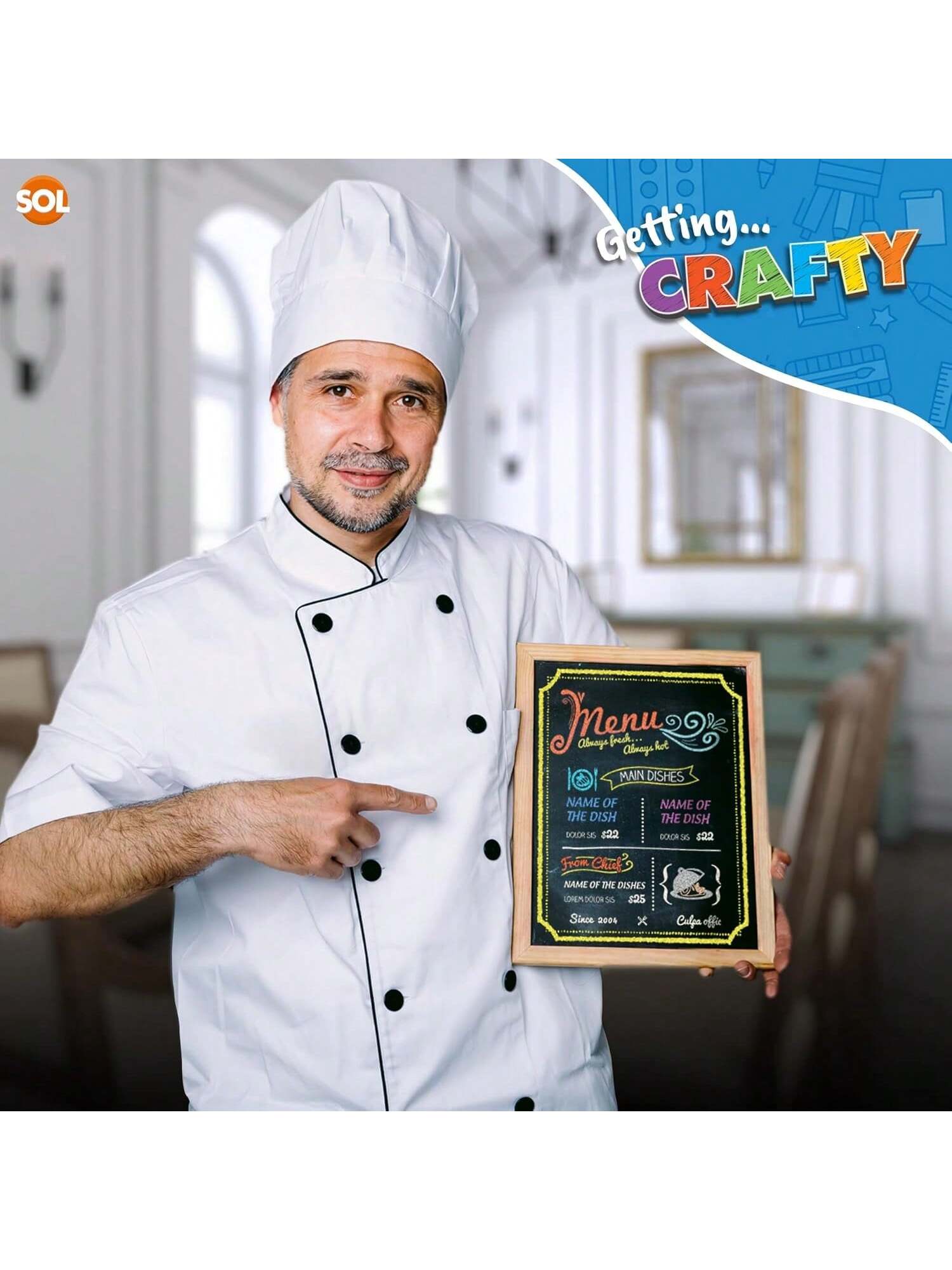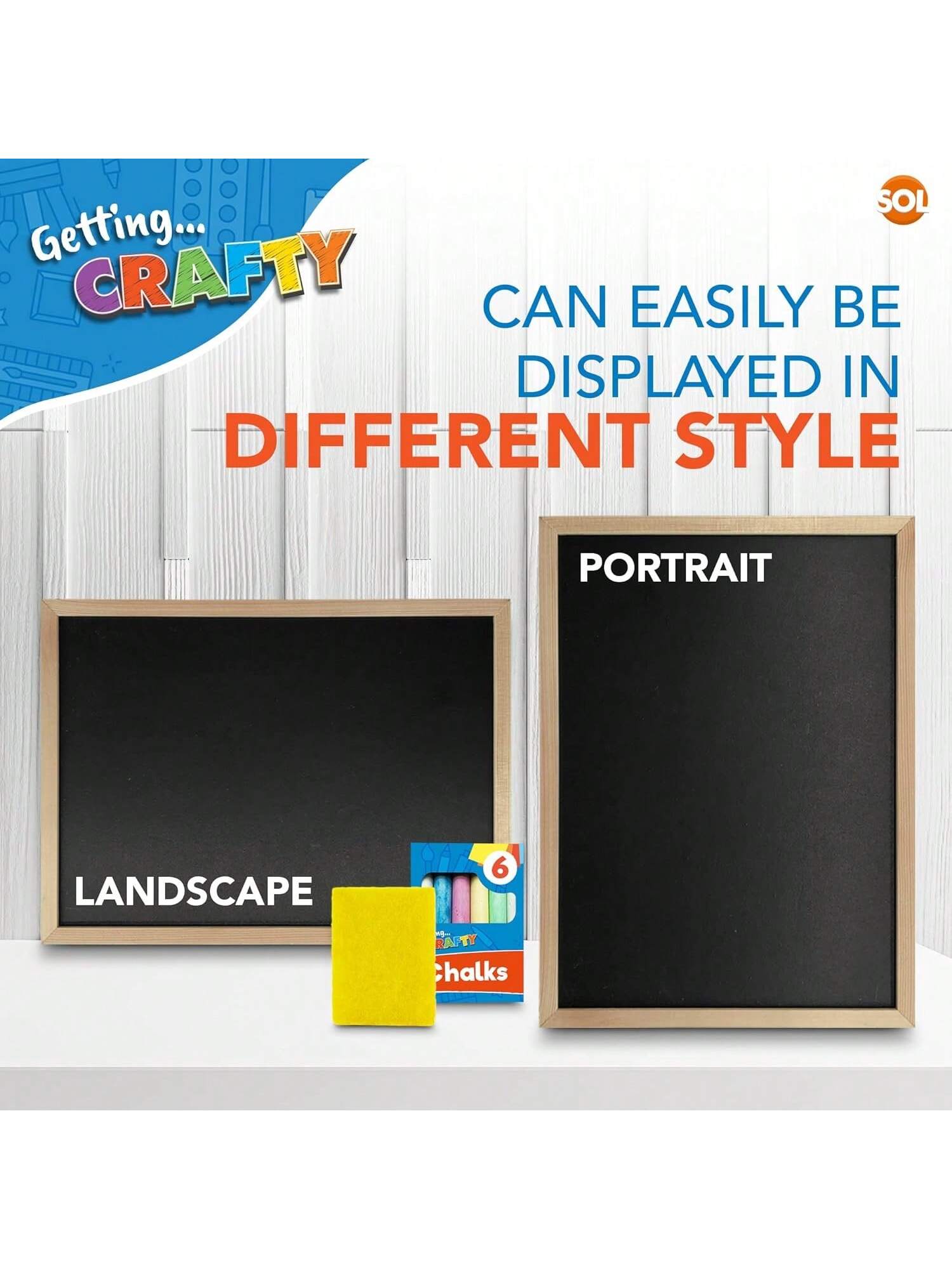 SOL Chalkboard With Chalk & Eraser Set, 21 X 28cm Small Chalkboard For Kids, Lightweight & Portable Blackboard With Wooden Frame, Wall Mounting, Ideal For Home, Office, Classrooms & Creative Drawings