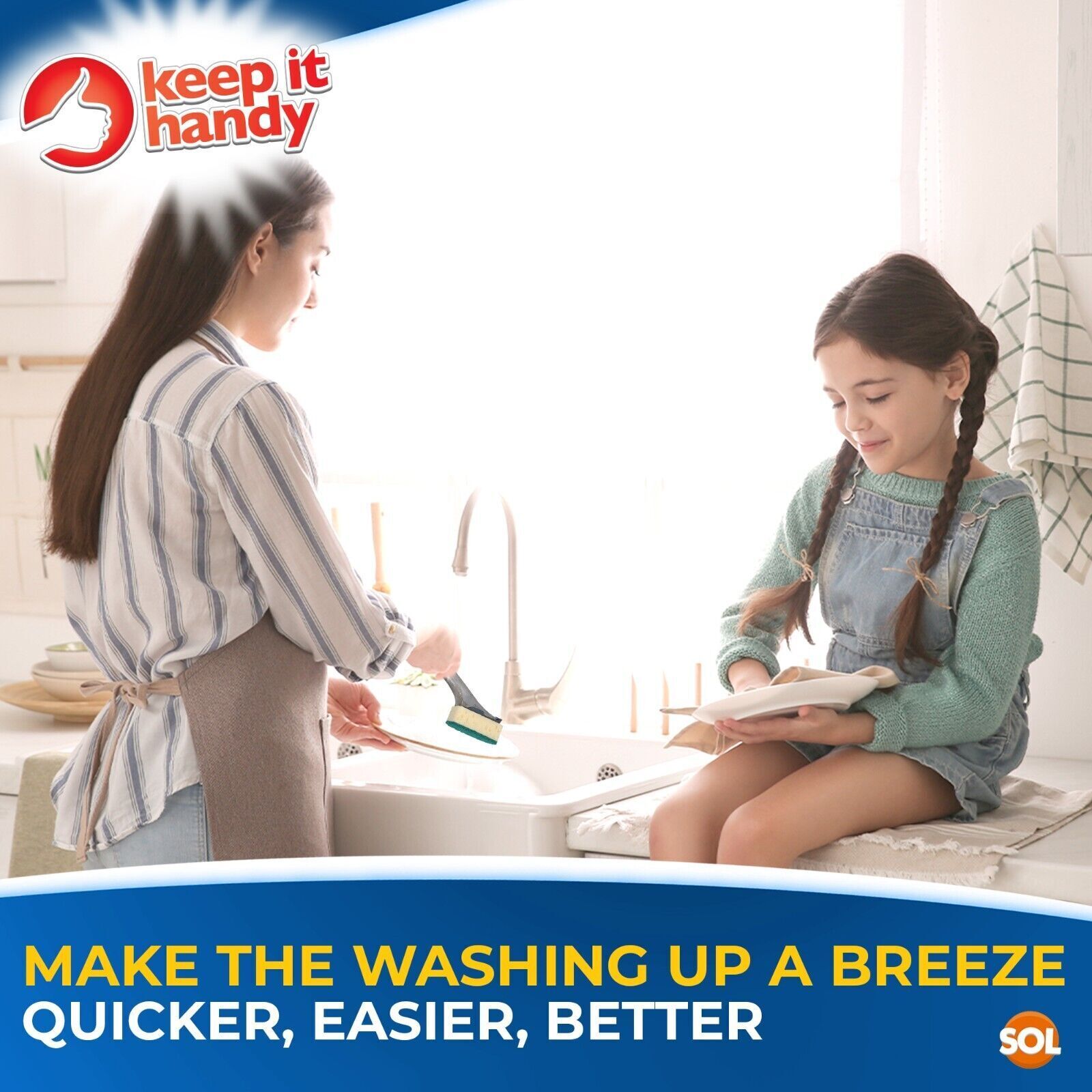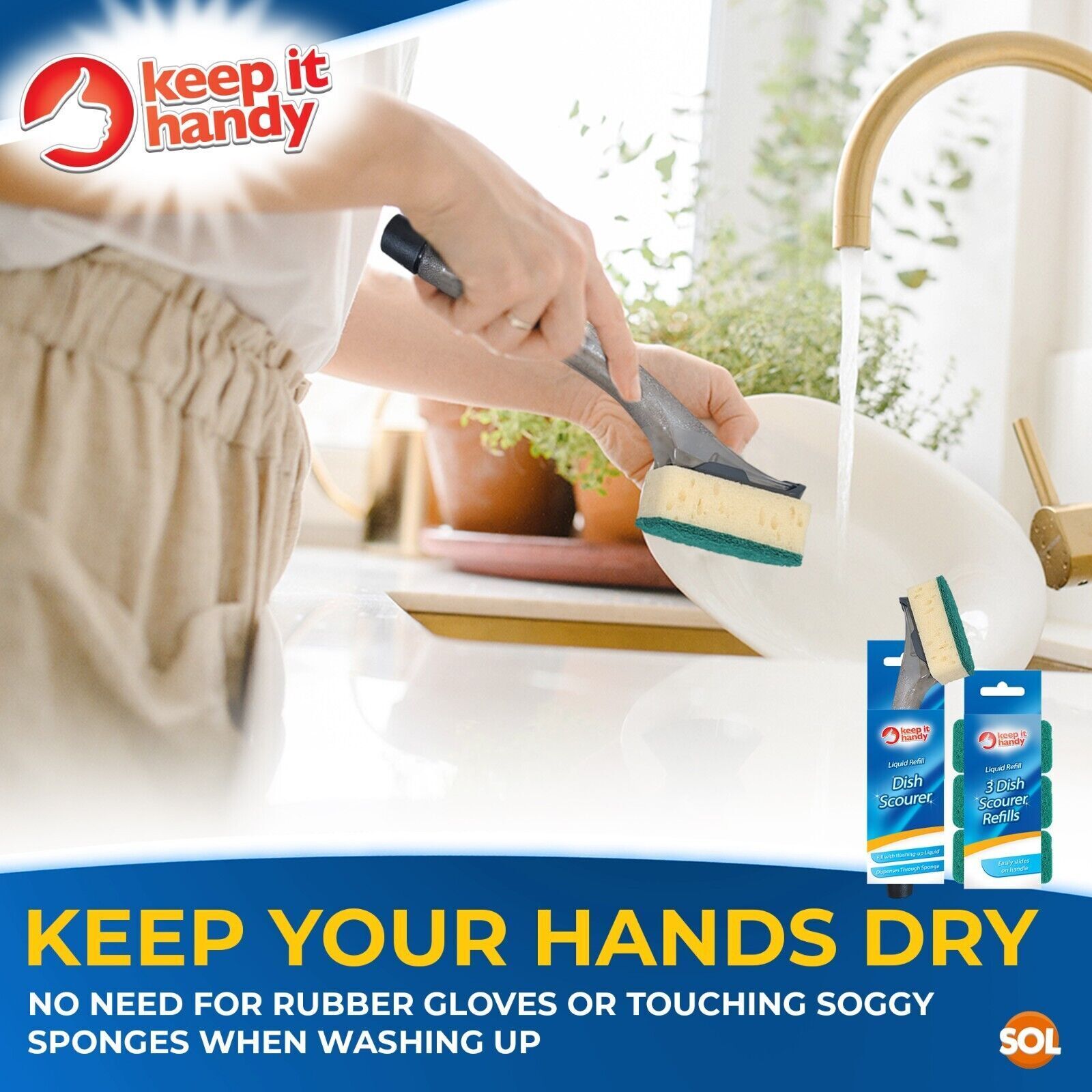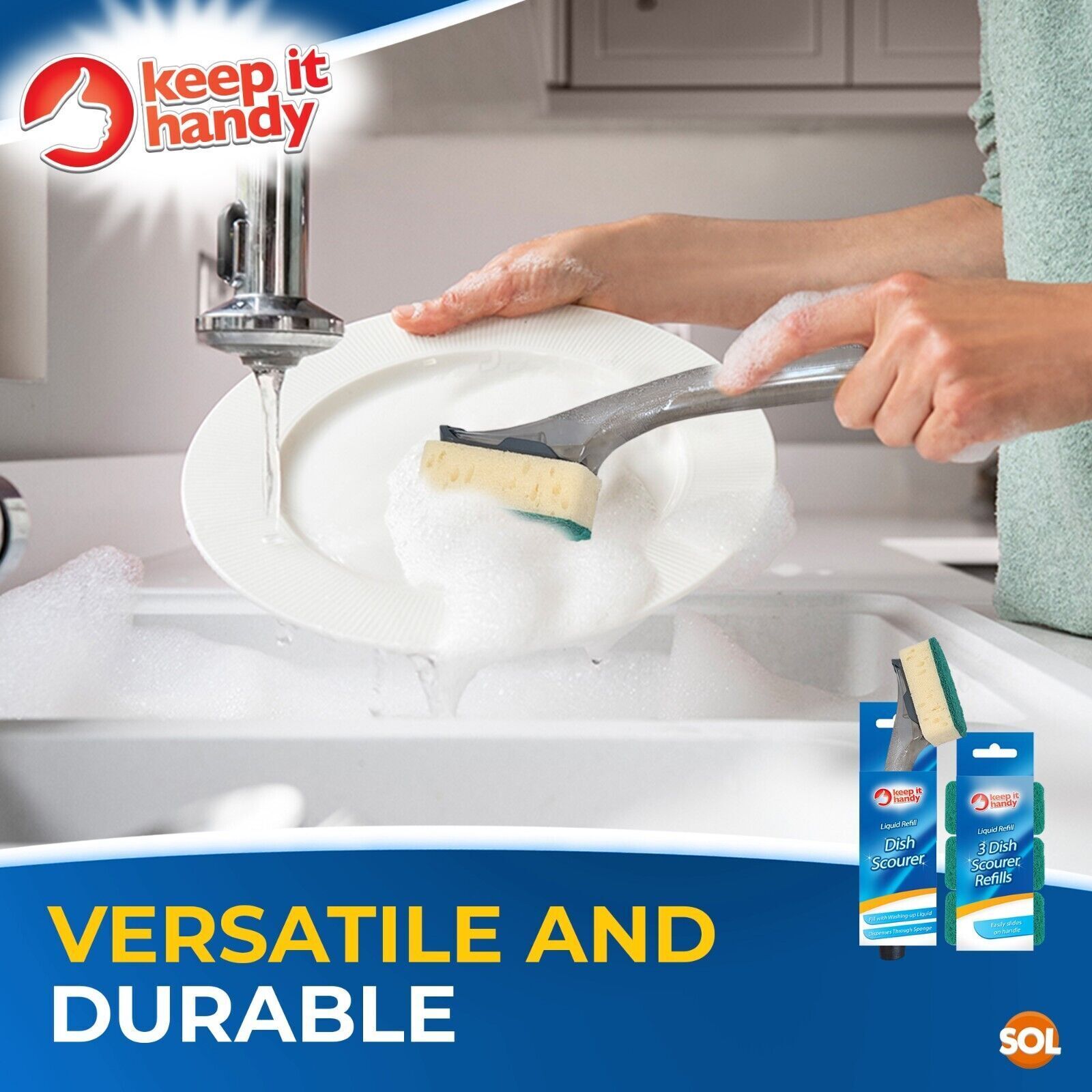 No more touching soggy sponge when washing: No need to squeeze out fresh washing up liquid throughout the wash. With its long handle that already has the washing liquid in, there is no need to constantly squeeze out the scourer while washing, you can even keep one hand out of water.