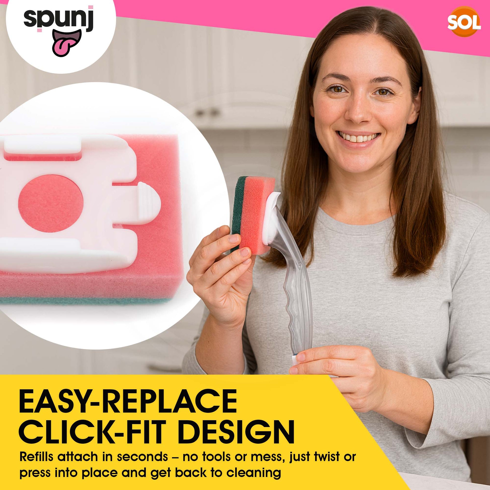 spunj 2 Pack Sponge with Liquid Handle Bundled with 6x Refill Heads - Liquid Handle Sponge for Super Fun Easy Cleaning and Dishwashing, Built in Soap Dispenser & Replaceable Heads