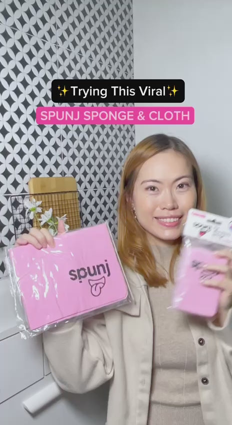 Spunj Cleaning Bundle | Pink Sponge and Cloth | Super Absorbent