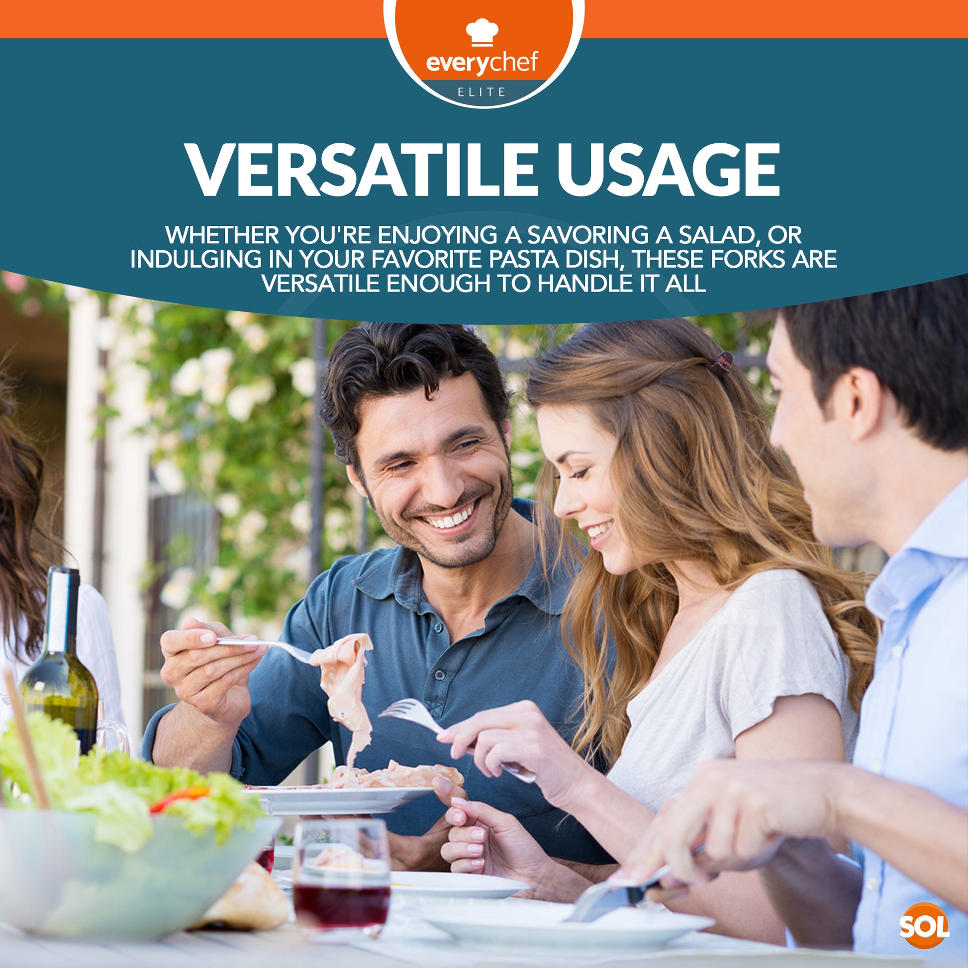 Set of 4 - Each pack includes four dinner forks great for families and hosting dinner parties.