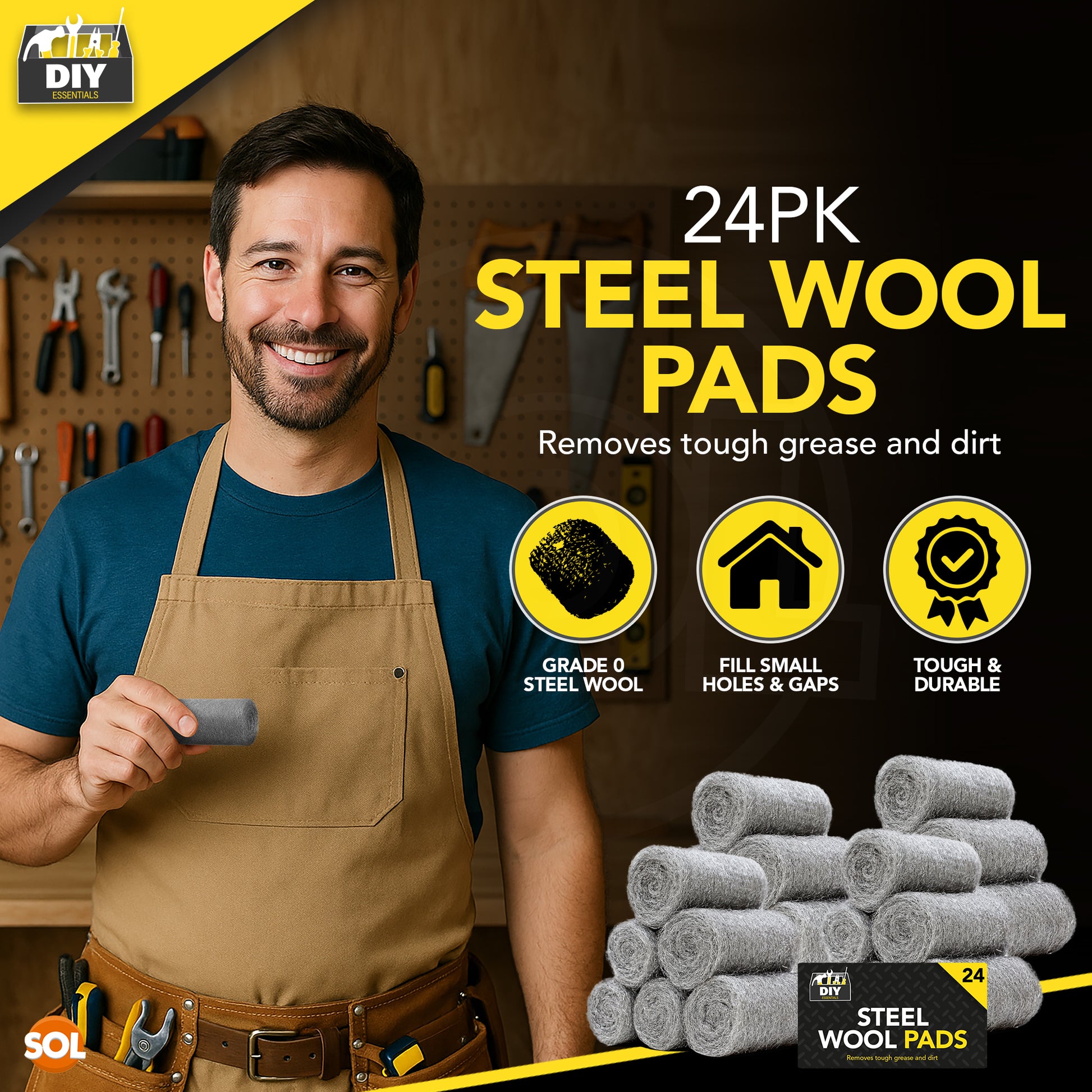 Steel Wool Pads Ultra Fine 0000 | Versatile Metal Scourers | 24 Pack