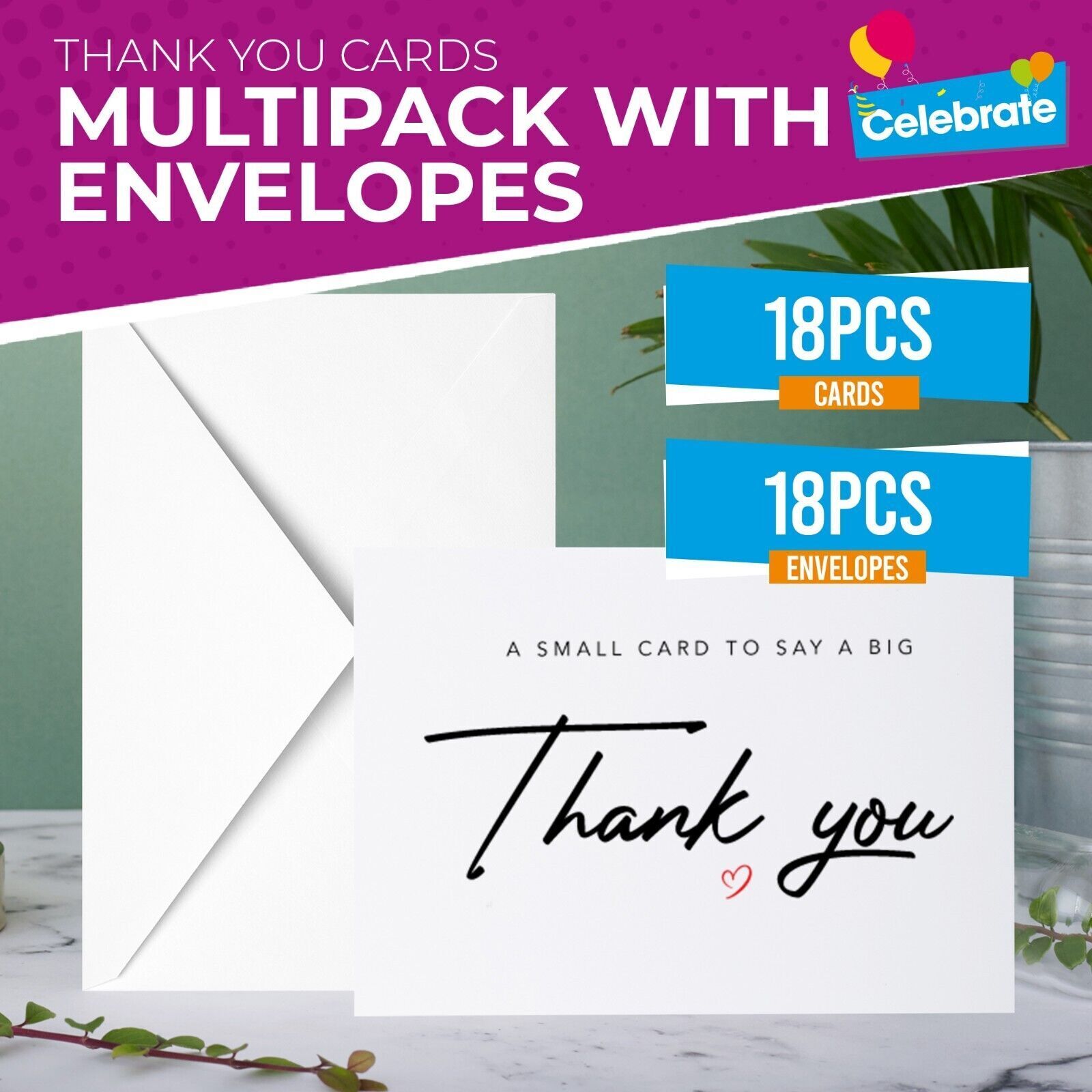 Thank You Cards with Envelopes | A6 Thankyou Notes for Birthday & Wedding | 18 Pack