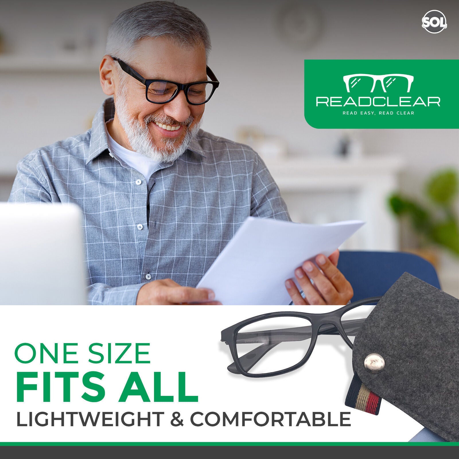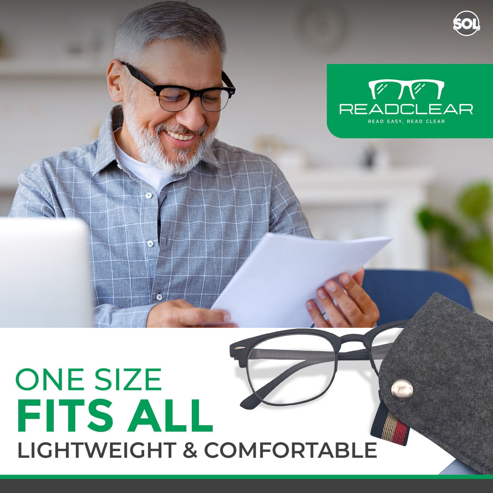 Thin Reading Glasses +1 to +3.5 | Unisex with Case & Cloth