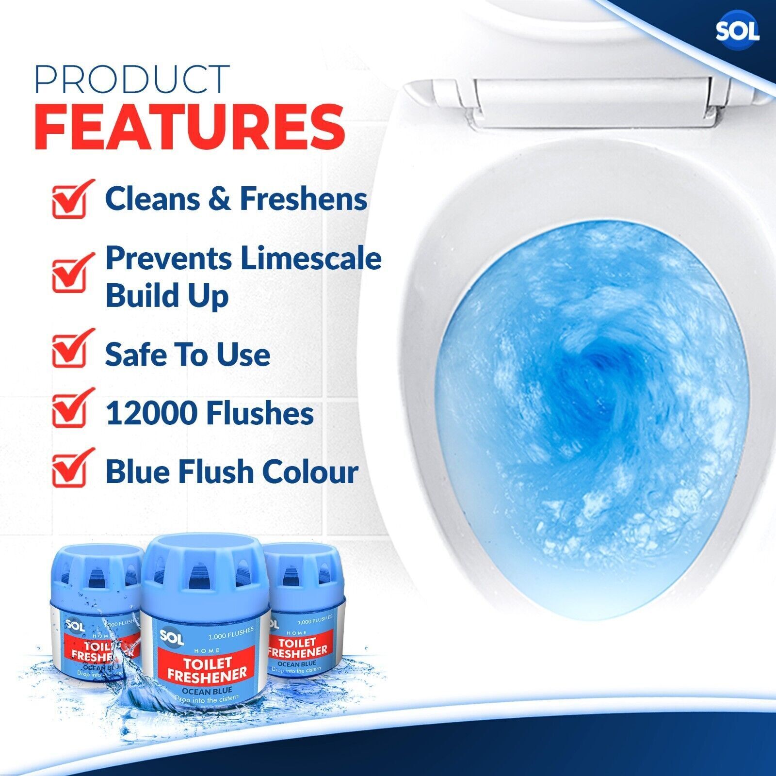 Limescale Cleaner: SOL toilet blocks for cisterns contain powerful cleaning agents that disinfect for 1000 flushes keeping your toilet bowl clean and smelling fresh.