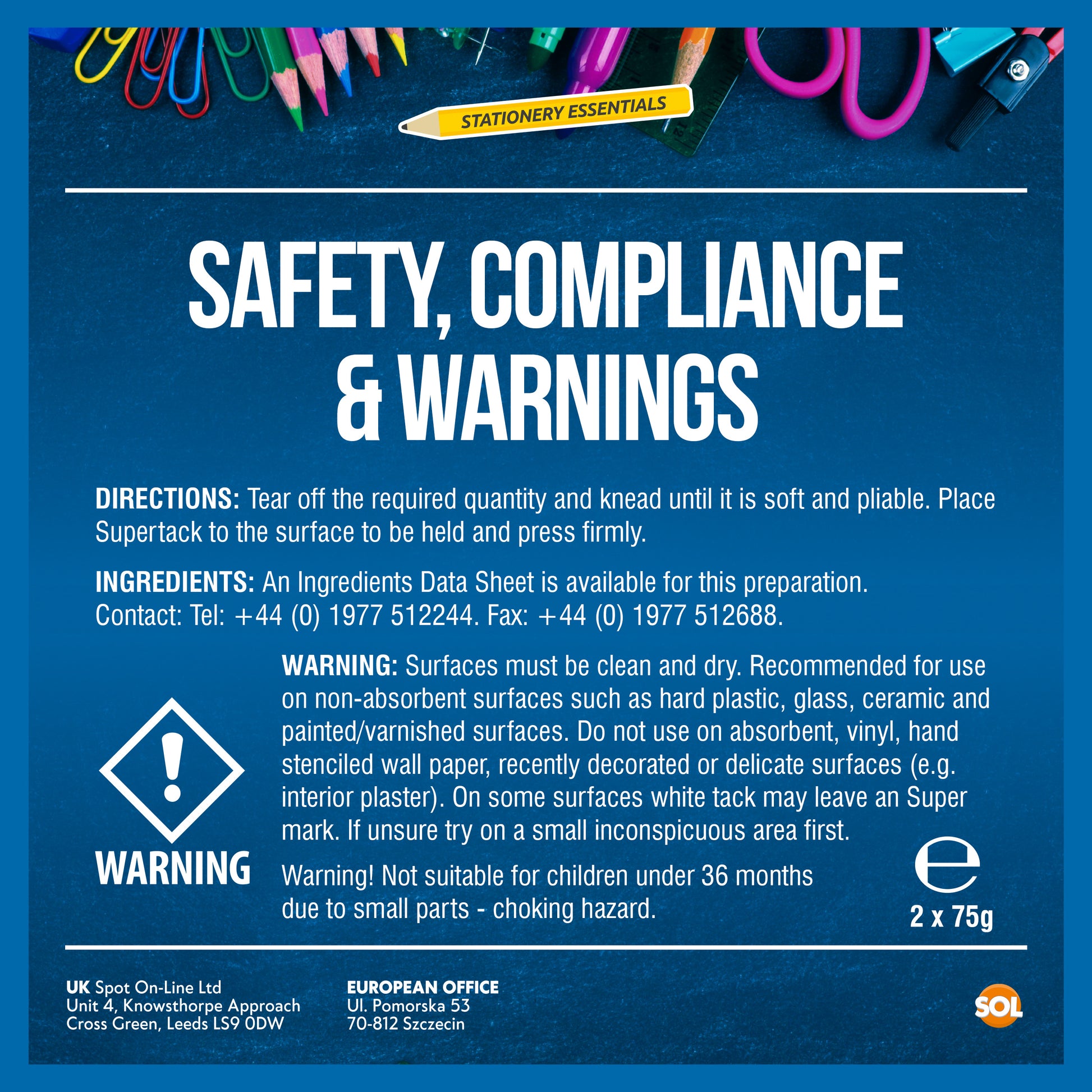 Convenient Package: The package includes 2 x 75g of putty, total of 150g in one purchase of Super Tack. Convenient and ready to use when needed. In sheet form with 8.6cm x 14cm in dimensions. No nails or screws needed, not liquid, no spillage, no sticky mess.