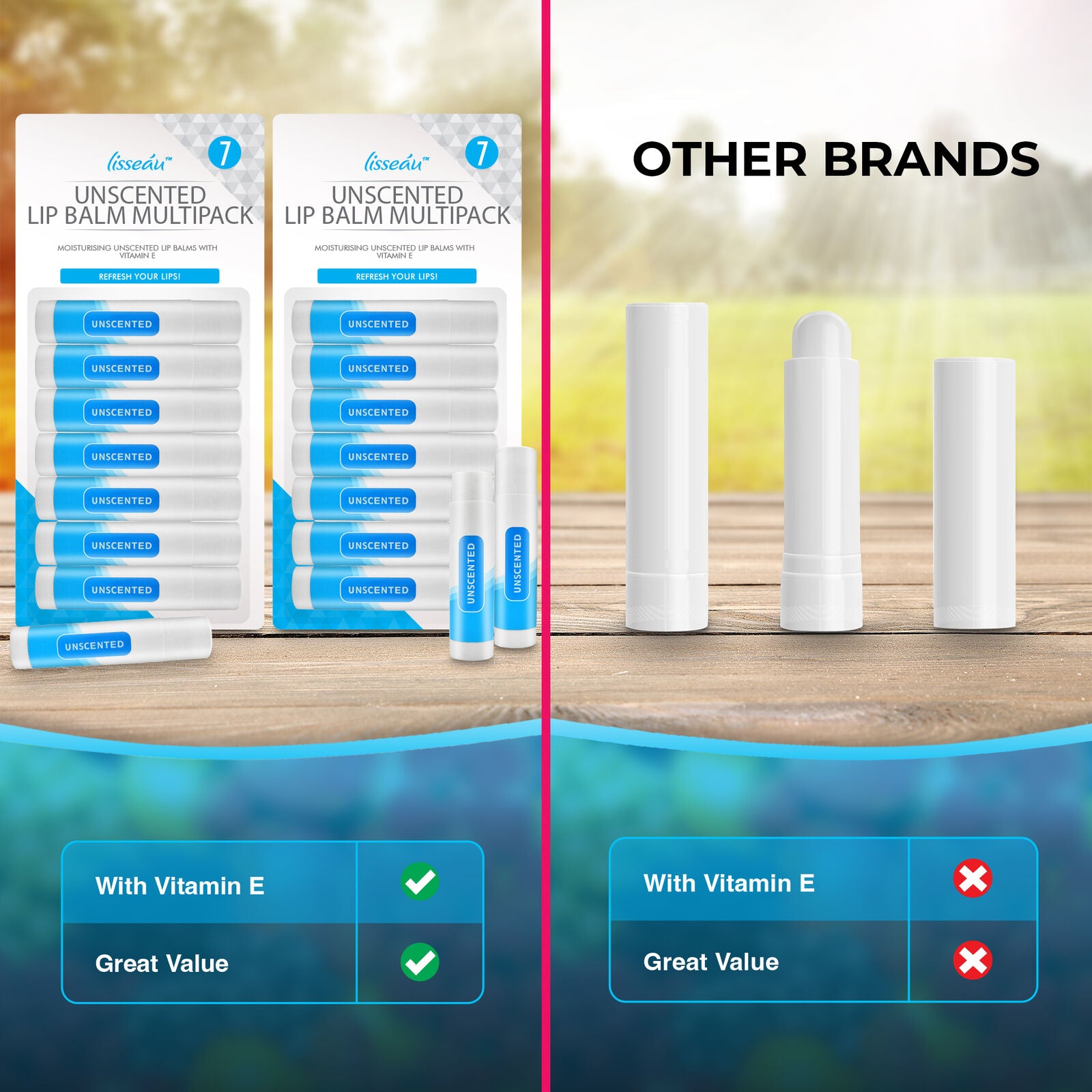 Unscented Lip Balm Set | Moisturising Vitamin E Stick | 7 Pack