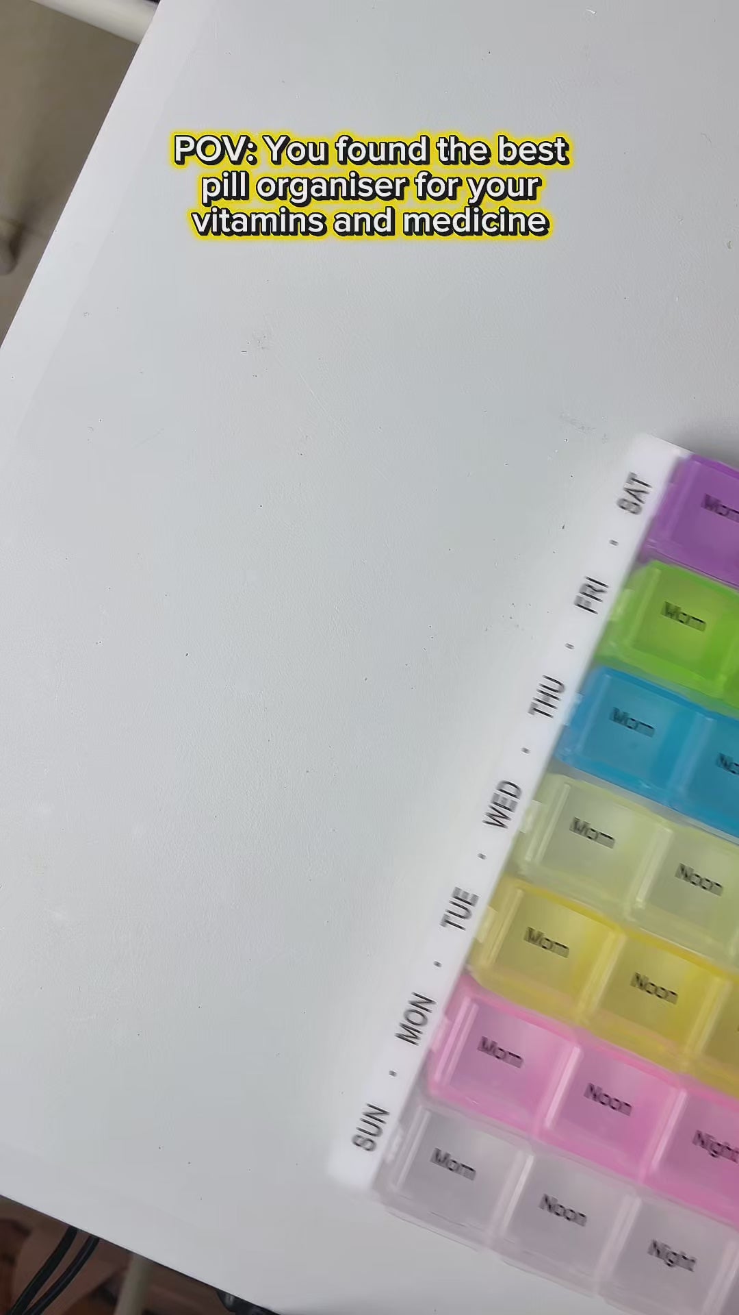 - No Excuses For Not Taking Supplements - Organise your daily pill consumption with this pill box organiser. These pill boxes can also be for your parents. It will give you peace of mind that they didn't forget their meds and didn't taken too many.