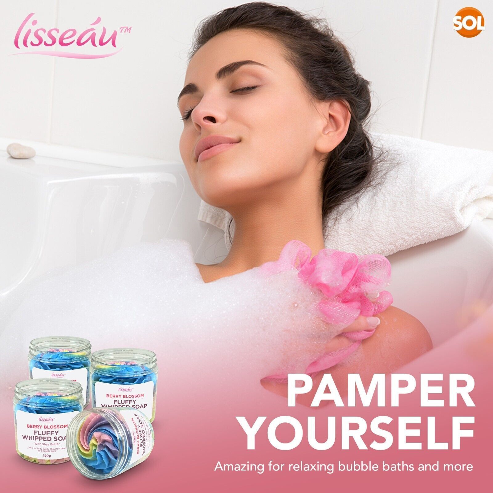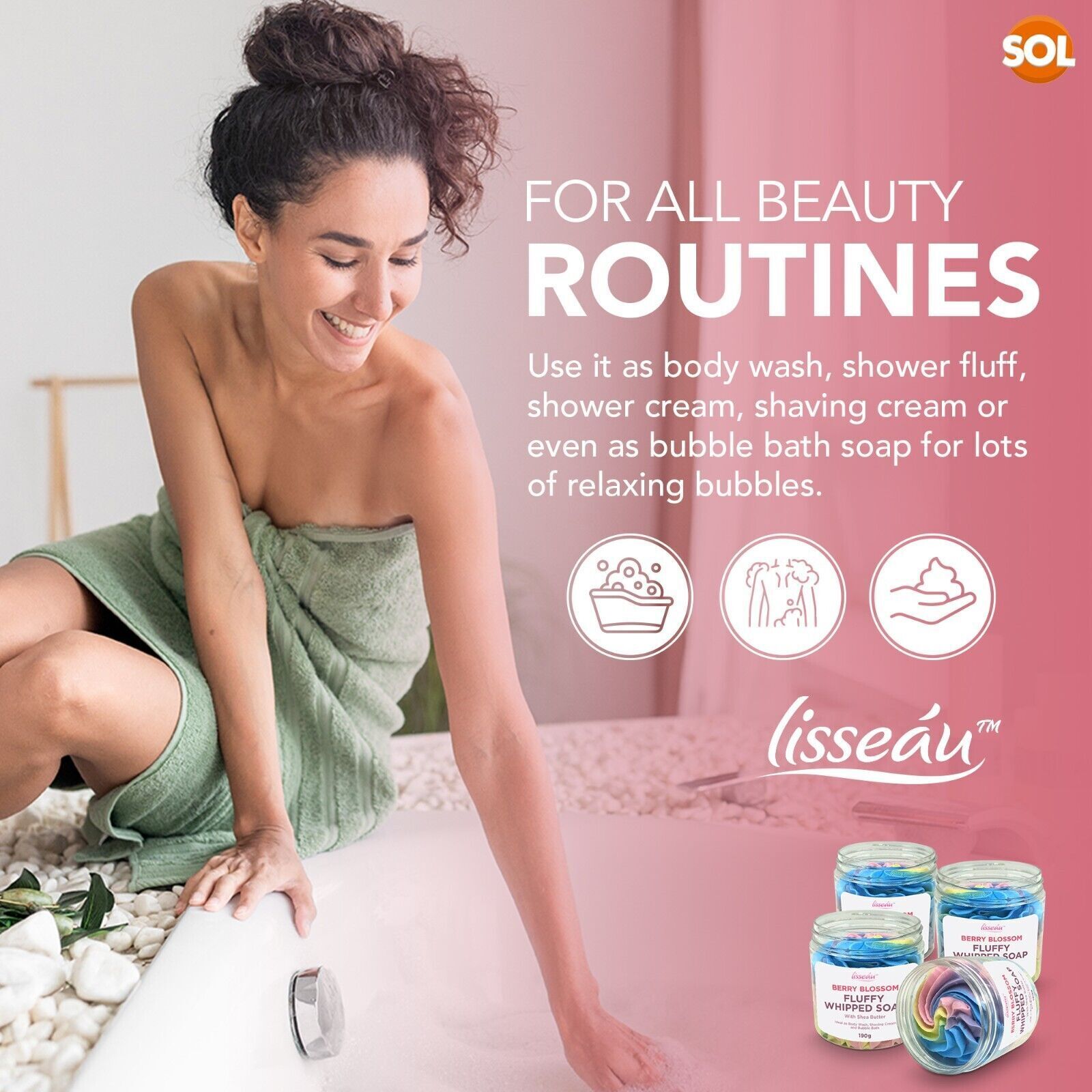 Indulge Your Senses: Berry Blossom by Lisseau presents a luxurious fluffy whipped soap infused with shea butter, delivering an exquisite sensory experience. Our super fluffy soap comes in four berry-inspired colors, enveloping you in a delightful aroma and leaving your skin feeling nourished.