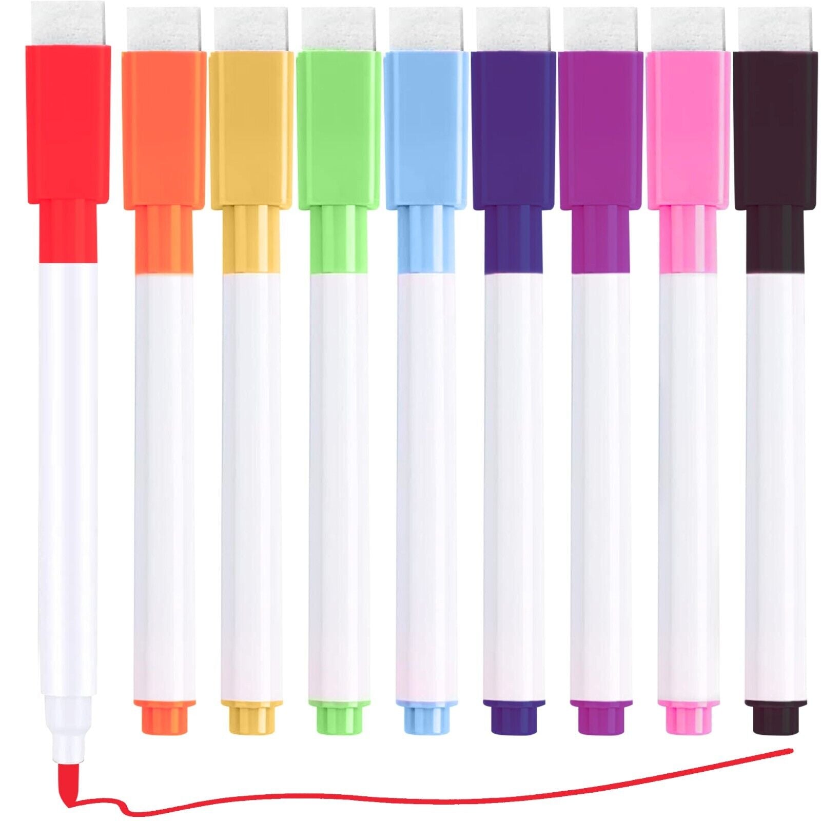 Whiteboard Pens & Eraser Magnetic Dry Wipe | White Board Markers | 9 Pack