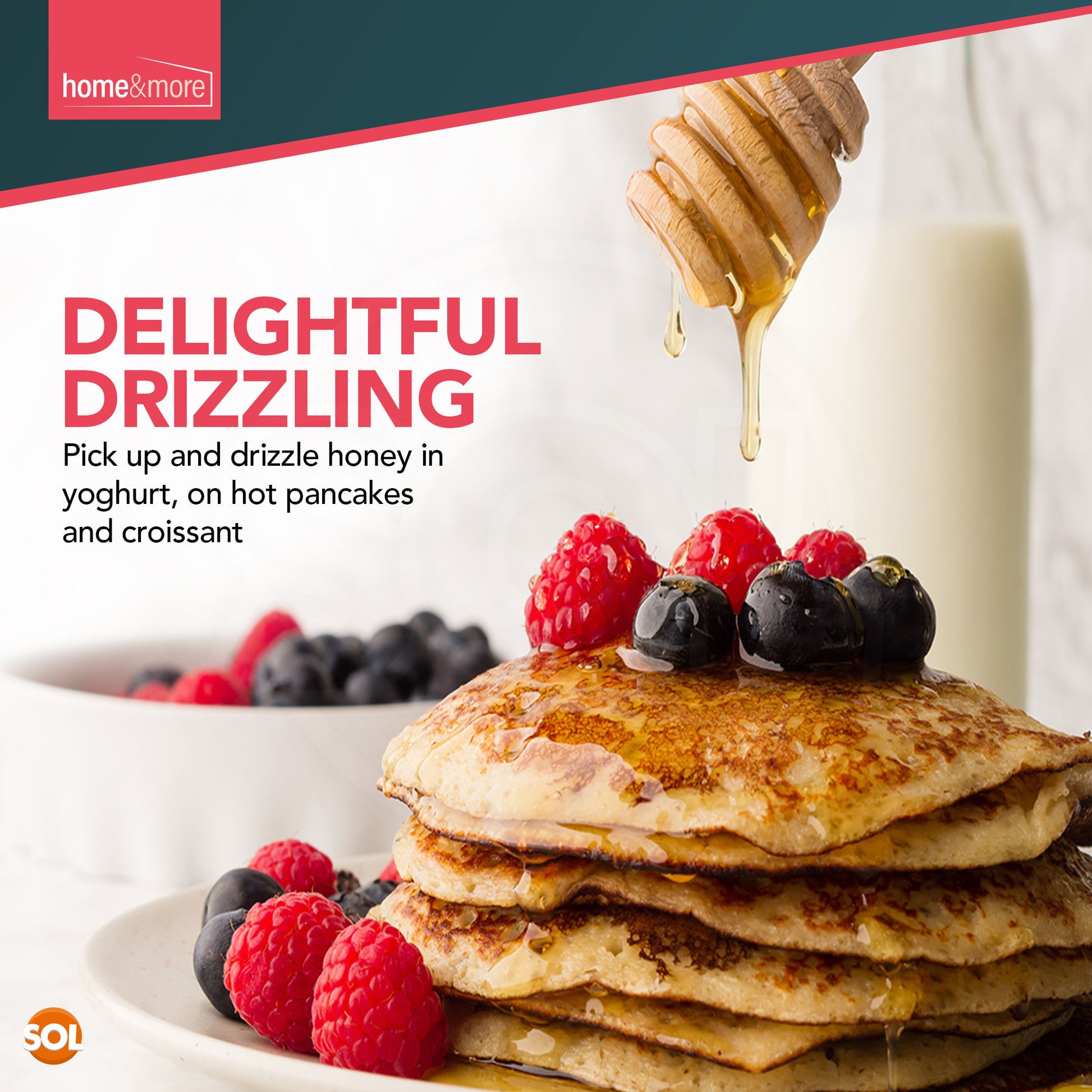 Delightful Drizzling: Use our honey dipper to pick up and drizzle honey in yoghurt or on hot pancakes and croissants yummm. You'll make Winnie jealous!