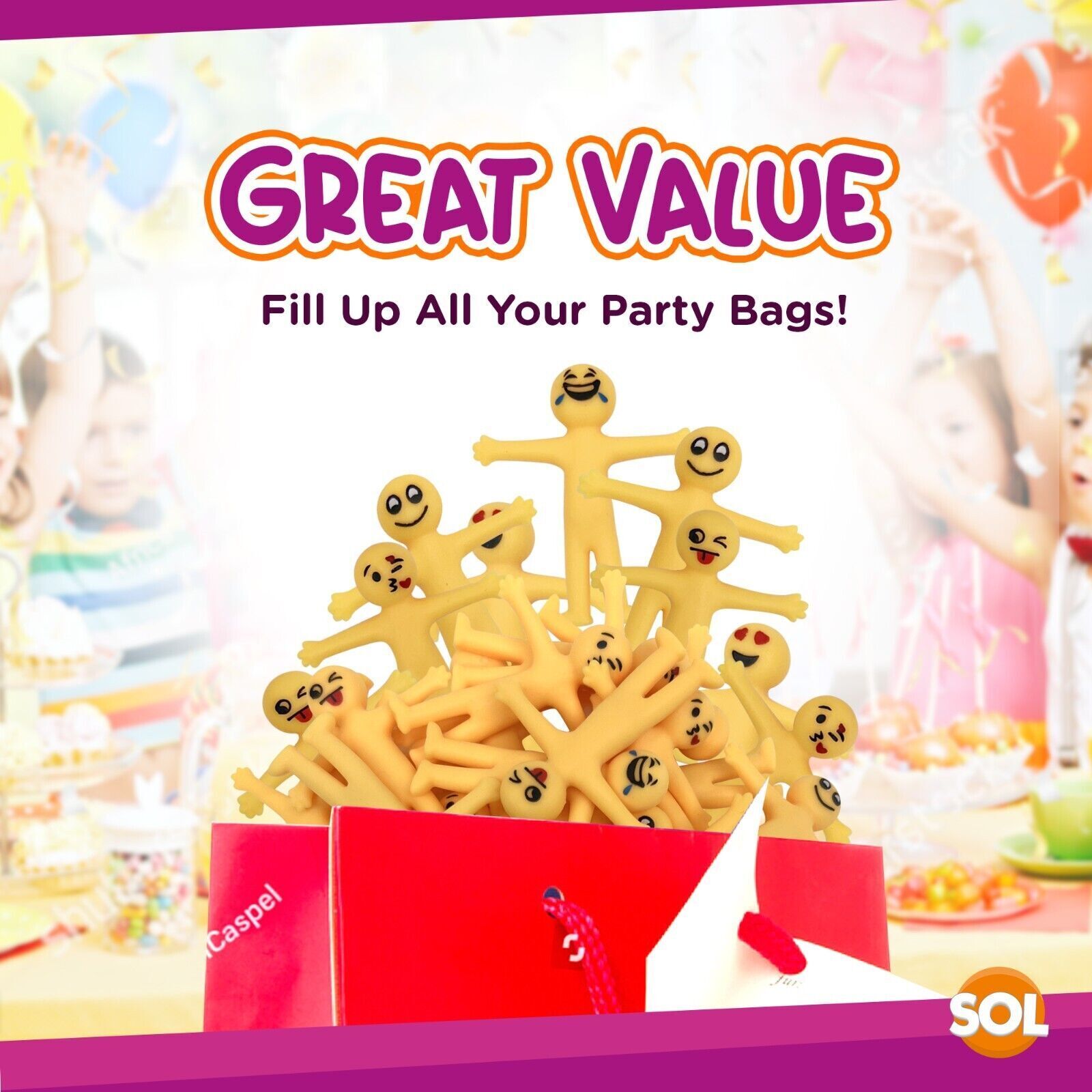 Fill Up Your Party Bags - These cheap party bag fillers for kids are great small gifts for children, and will fill up your children party bags fillers. Our Strechy Men Yellow are the ultimate party bag favours, toys for party bags, party bag gifts.